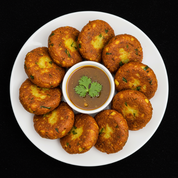 Round potato patties coated with chapati, frozen and ready to cook. Crispy outside, soft potato inside, perfect for snacks or meals.