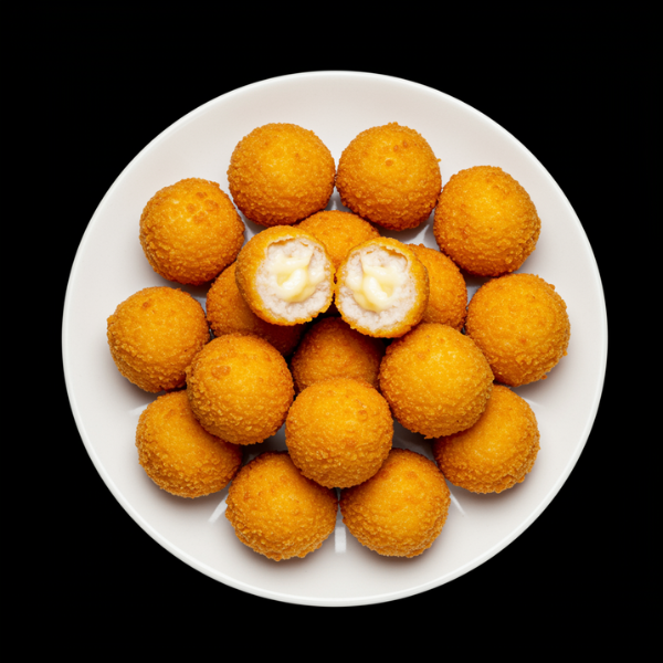 Indulge in Chicken Cheese Balls! These frozen snacks are perfectly round, golden, and crispy on the outside with juicy chicken and melted cheese inside. Ready-to-cook straight from the freezer, they’re ideal for parties, tea-time snacks, or appetizers. Accompanied visually by small chicken pieces and cheese cubes for a premium presentation.